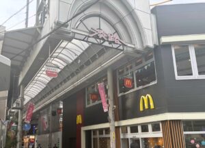 地元の人々に長く愛される商店街で、昔ながらの惣菜屋や八百屋、和菓子店が並びます。
