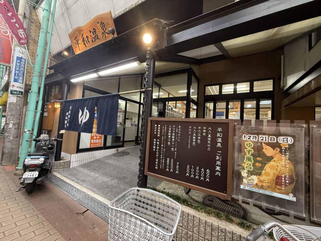 石橋阪大前駅から徒歩2分、超絶駅近にある平和温泉🛁