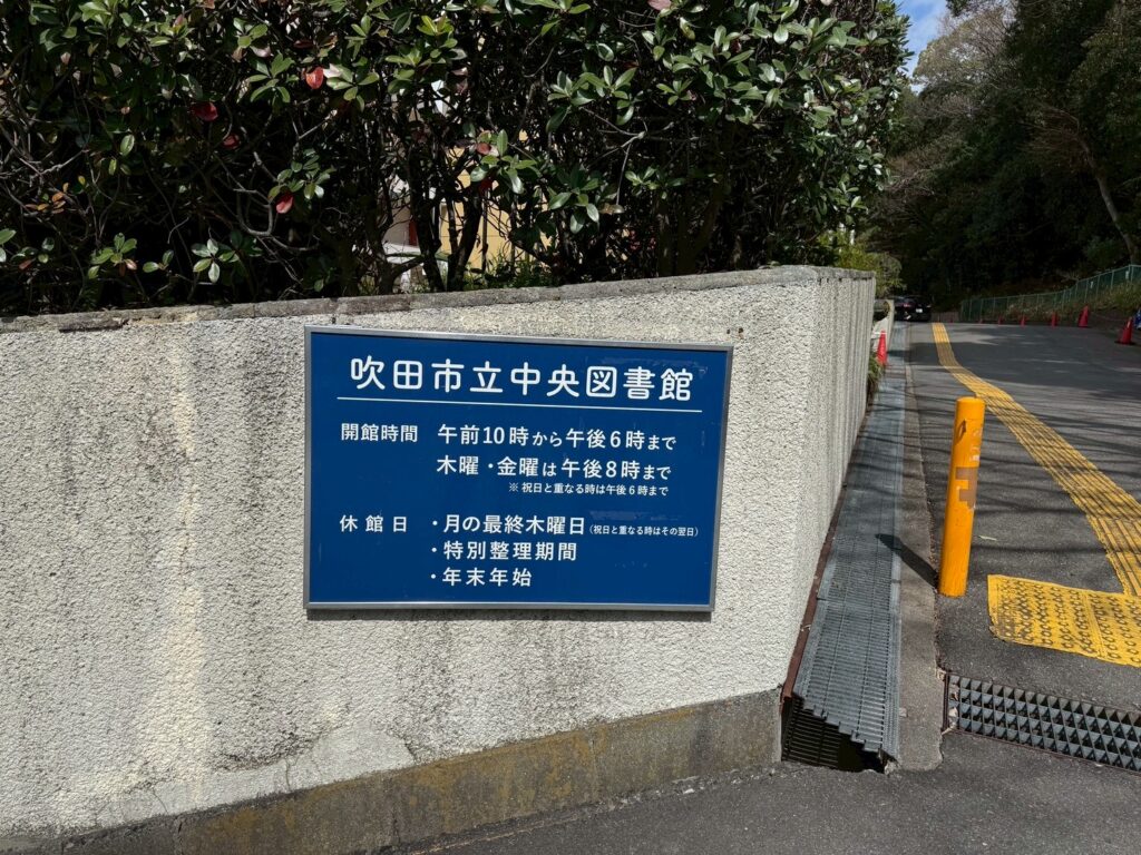 豊津駅から徒歩10分のところにある吹田市中央図書館。